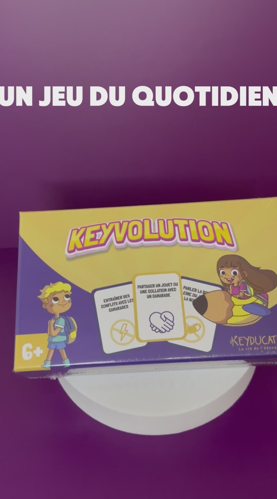 Keyvolution est recommandé à partir de 6 ans. Cet âge est purement indicatif : certains enfants plus jeunes peuvent aussi y jouer s’ils comprennent les règles et sont accompagnés d’un adulte.